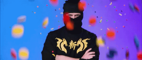 Descripción del contenido: a man wearing a ninja mask and a black shirt with chinese writing