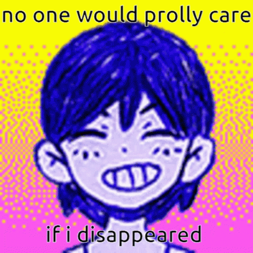 Sisu kirjeldus: a drawing of a boy with blue hair and a caption that says no one would prolly care if i disappeared .