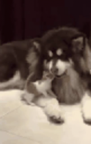 Eduki-azalpena: a black and white photo of a dog laying on a tiled floor .