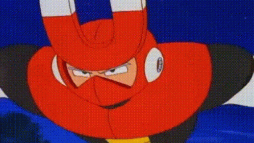 Sisällön kuvaus: a close up of a cartoon character in a red suit with a magnet on his chest .