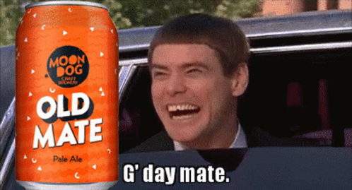 Sisällön kuvaus: a can of moon dog old mate pale ale next to a man
