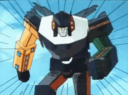 a cartoon of a group of transformers with a caption that says " laughs in cybertronian "