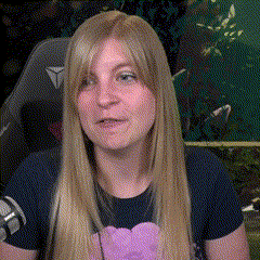a woman wearing headphones and a shirt that says assassin 's creed is smiling