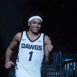 a basketball player in a dawgs jersey is running