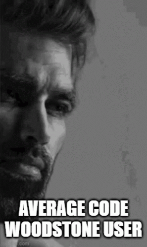 Paglalarawan ng Content: a man with a beard is crying in a black and white photo with the words `` average code woodstone user '' .