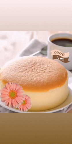 Paglalarawan ng Content: a cake on a plate next to a cup of coffee with the words coffee time written on it