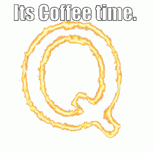 Paglalarawan ng Content: a letter q that is on fire with the words it 's coffee time