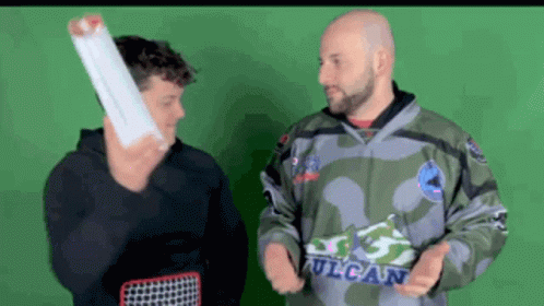 Paglalarawan ng Content: a man wearing a shirt that says vulcan holds a piece of paper