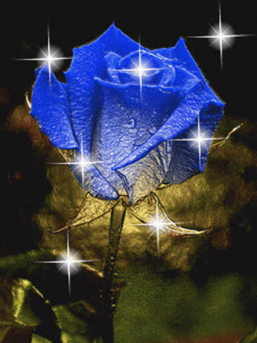 Paglalarawan ng Content: a blue rose with gold leaves is surrounded by sparkling stars
