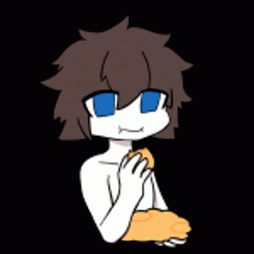 Paglalarawan ng Content: a cartoon character with brown hair and blue eyes is holding a donut in his hand .
