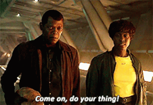 Paglalarawan ng Content: a man and a woman are standing next to each other with the man saying come on do your thing