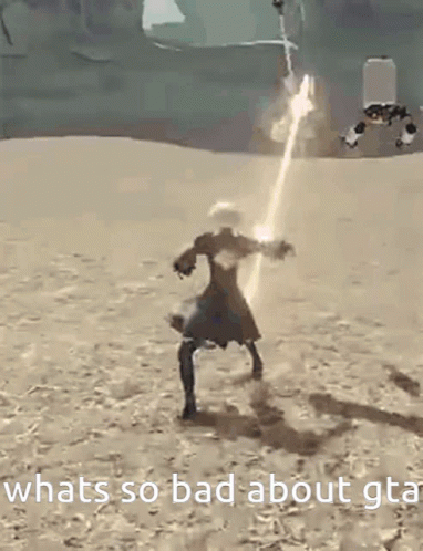 - Paglalarawan ng Content: a video game character is kicking another character in the face with the words whats so bad about gta on the bottom