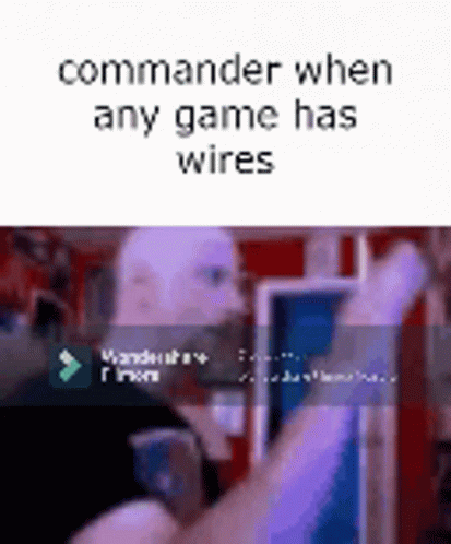 Paglalarawan ng Content: a commander when any game has wires meme with a man playing a video game .