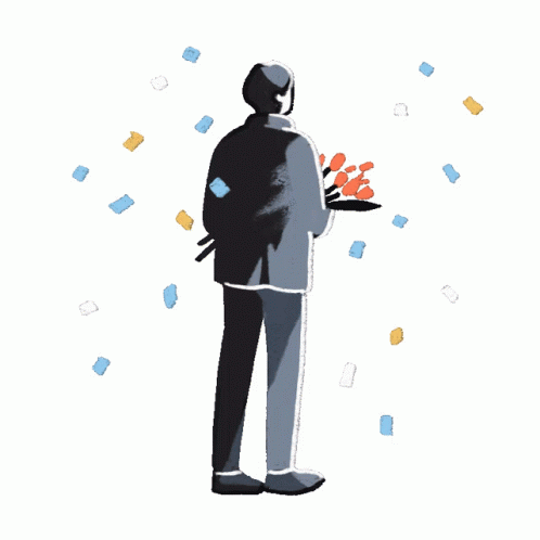 Paglalarawan ng Content: a man in a suit holding a bouquet of flowers