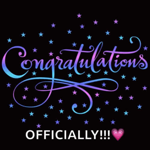 Paglalarawan ng Content: the word congratulations is on a black background with purple and blue stars