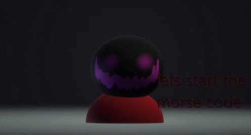 Paglalarawan ng Content: a black sphere with purple eyes and mouth and the words lets start the morse code