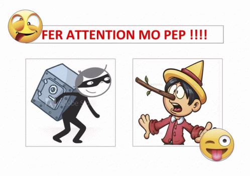 Paglalarawan ng Content: a cartoon of a thief and a cartoon of pinocchio with the words fer attention mo pep !!! below them