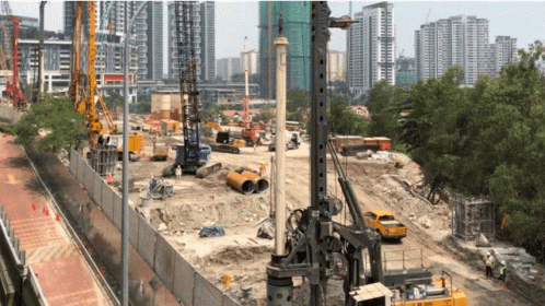 Paglalarawan ng Content: a construction site with a yellow truck that says ' jlm ' on the side