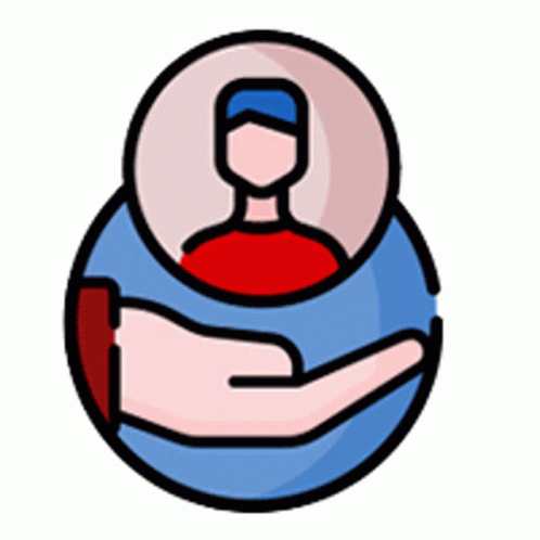 Paglalarawan ng Content: an icon of a hand holding a person 's head in a circle .