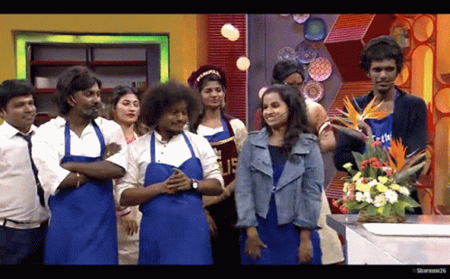 Paglalarawan ng Content: a group of people wearing blue aprons with the number 15