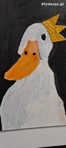 Paglalarawan ng Content: a painting of a duck with a yellow crown on its head