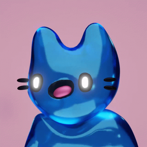 Paglalarawan ng Content: a blue cat with a pink tongue and glowing eyes