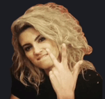 Paglalarawan ng Content: a woman with blonde hair is making a funny face while giving the middle finger .