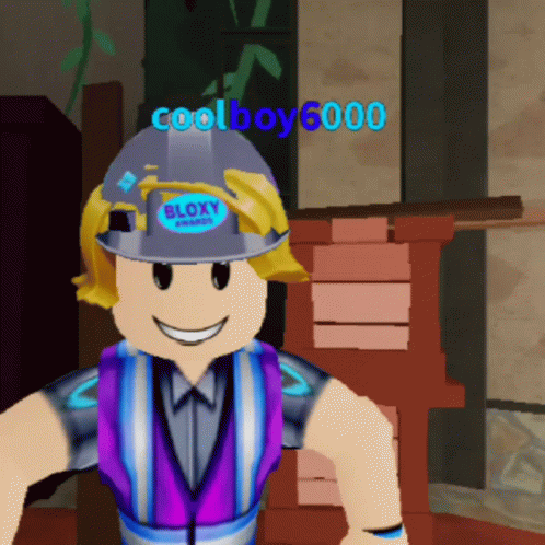 Paglalarawan ng Content: a cartoon character is wearing a hard hat with the name coolboy6000 on it