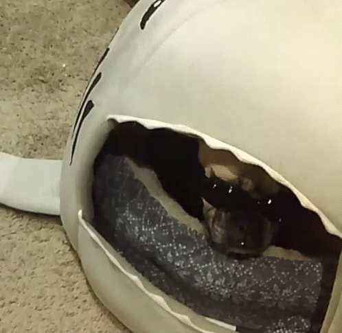 Paglalarawan ng Content: a cat is laying in a cat bed that looks like a shark 's mouth