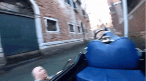 Paglalarawan ng Content: a man is riding a boat down a canal