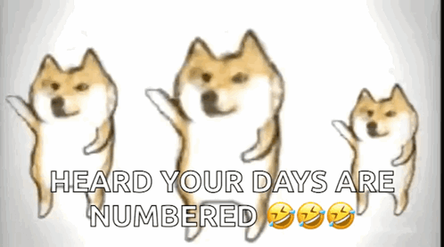 Paglalarawan ng Content: a group of doggos are dancing together with the words heard your days are numbered