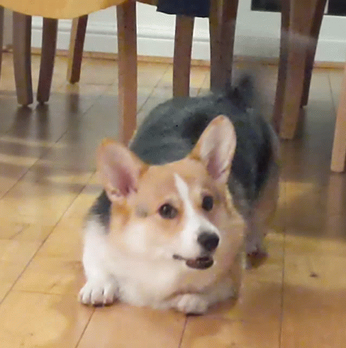 Paglalarawan ng Content: a brown and white dog is laying on the floor