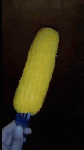 Paglalarawan ng Content: a blue plastic fork with a yellow corn on it