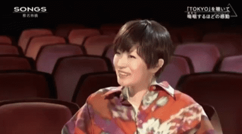 Paglalarawan ng Content: a woman sits in an auditorium with the words songs on the bottom left