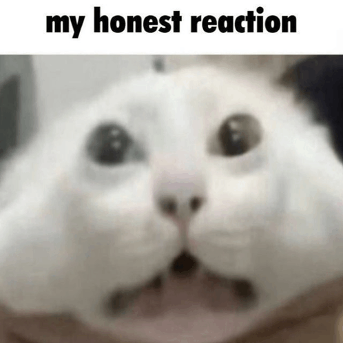 Paglalarawan ng Content: a close up of a cat 's face with the words my honest reaction above it .