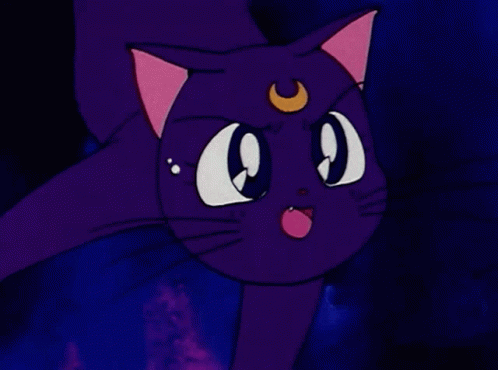 Paglalarawan ng Content: a purple cat with a pink crescent moon on its head
