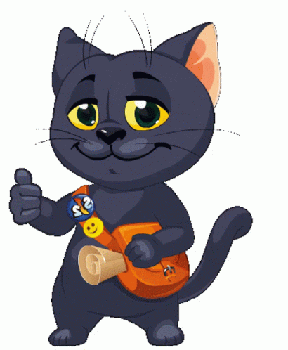Paglalarawan ng Content: a black cat with yellow eyes is holding a scroll and giving a thumbs up