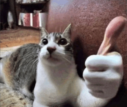 Paglalarawan ng Content: a cat is giving a thumbs up with its paw