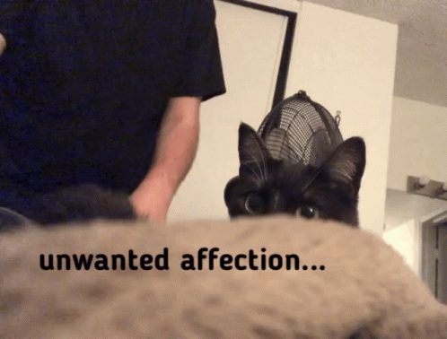 Paglalarawan ng Content: a cat looking at a man with the words unwanted affection