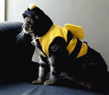 Paglalarawan ng Content: a cat is dressed in a bee costume
