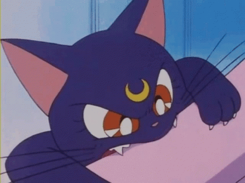 Paglalarawan ng Content: a close up of a cartoon cat with a crescent moon on its head