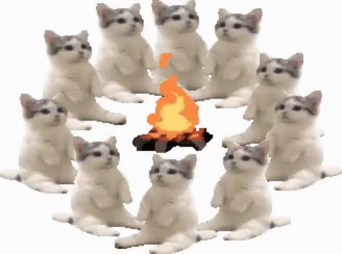 Paglalarawan ng Content: a group of cats sitting around a campfire .