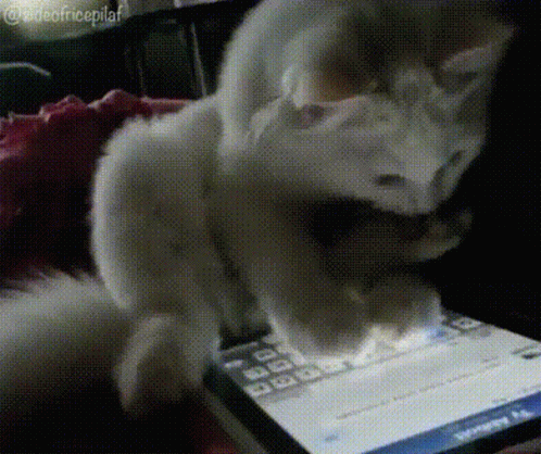 Paglalarawan ng Content: a white cat is laying on top of a cell phone with a watermark that says @steofnicepilaf
