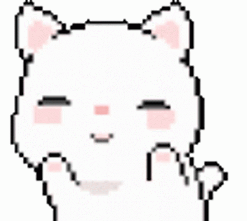 Paglalarawan ng Content: a pixel art illustration of a white cat with pink ears .