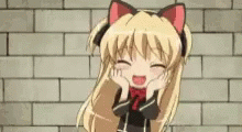 Paglalarawan ng Content: a blonde anime girl with cat ears is smiling and laughing .