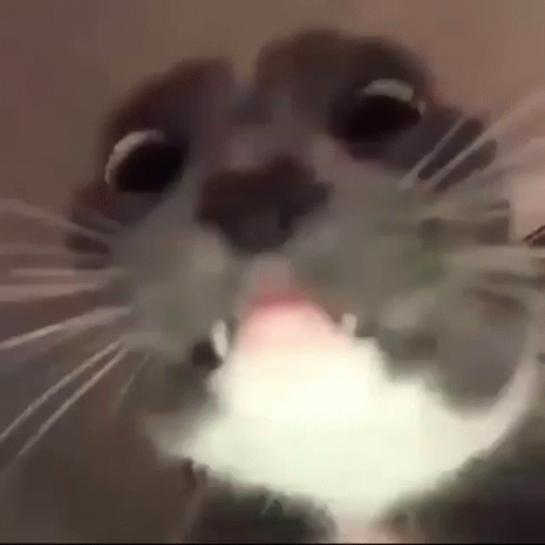 Paglalarawan ng Content: a close up of a cat 's face with its mouth open and teeth visible .