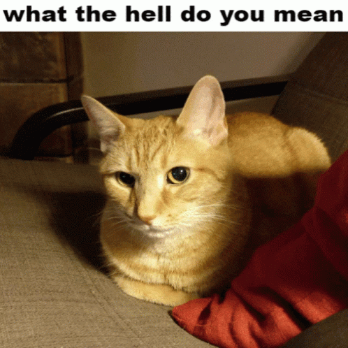 Paglalarawan ng Content: a cat laying on a couch with the words what the hell do you mean