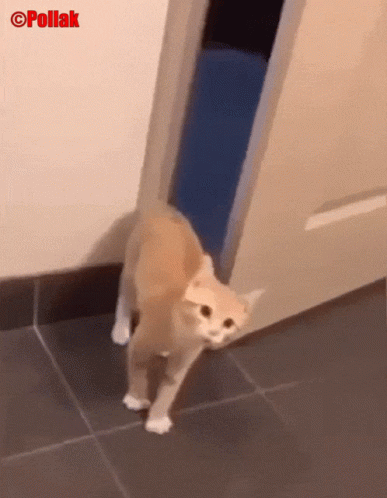 Paglalarawan ng Content: a cat is walking through a door with pollak written on the bottom right