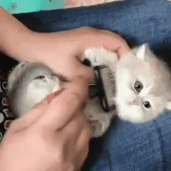 Paglalarawan ng Content: a person is brushing a kitten with a comb .