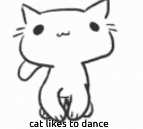 Paglalarawan ng Content: a black and white drawing of a cat dancing with the caption cat likes to dance .
